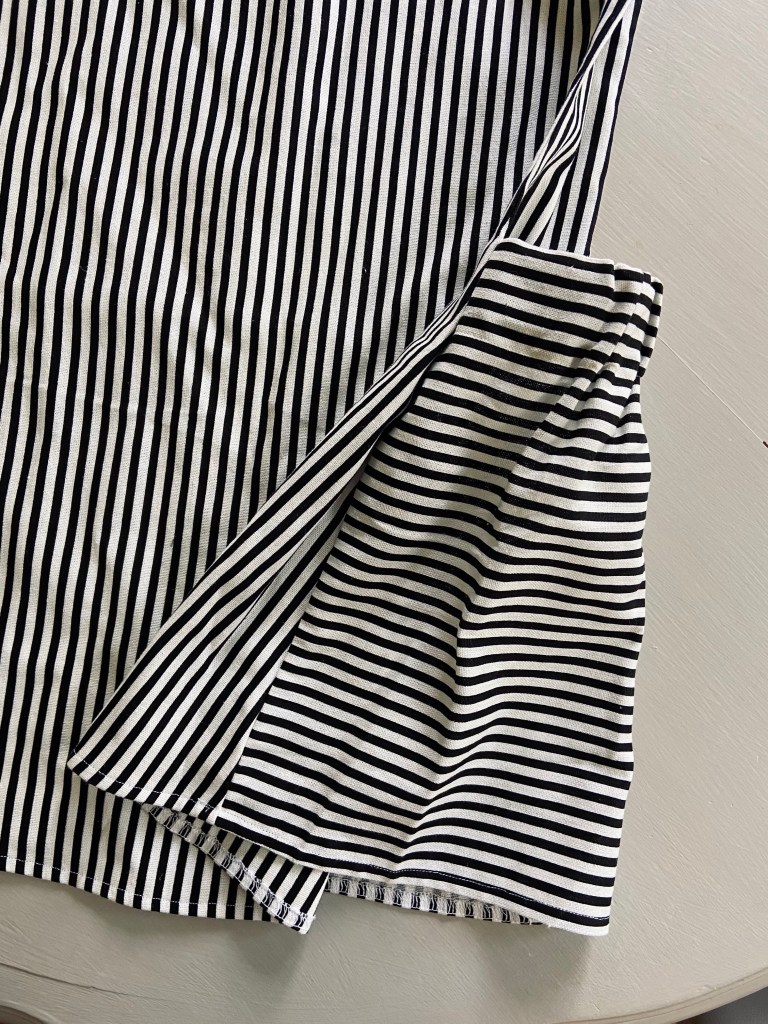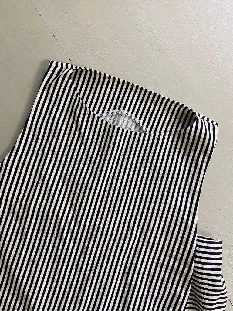 Tissu utilisé : J’ai utilisé un lin viscose rayé noir et blanc de chez Driessen Stoffen. Le tissu est assez épais et raide.