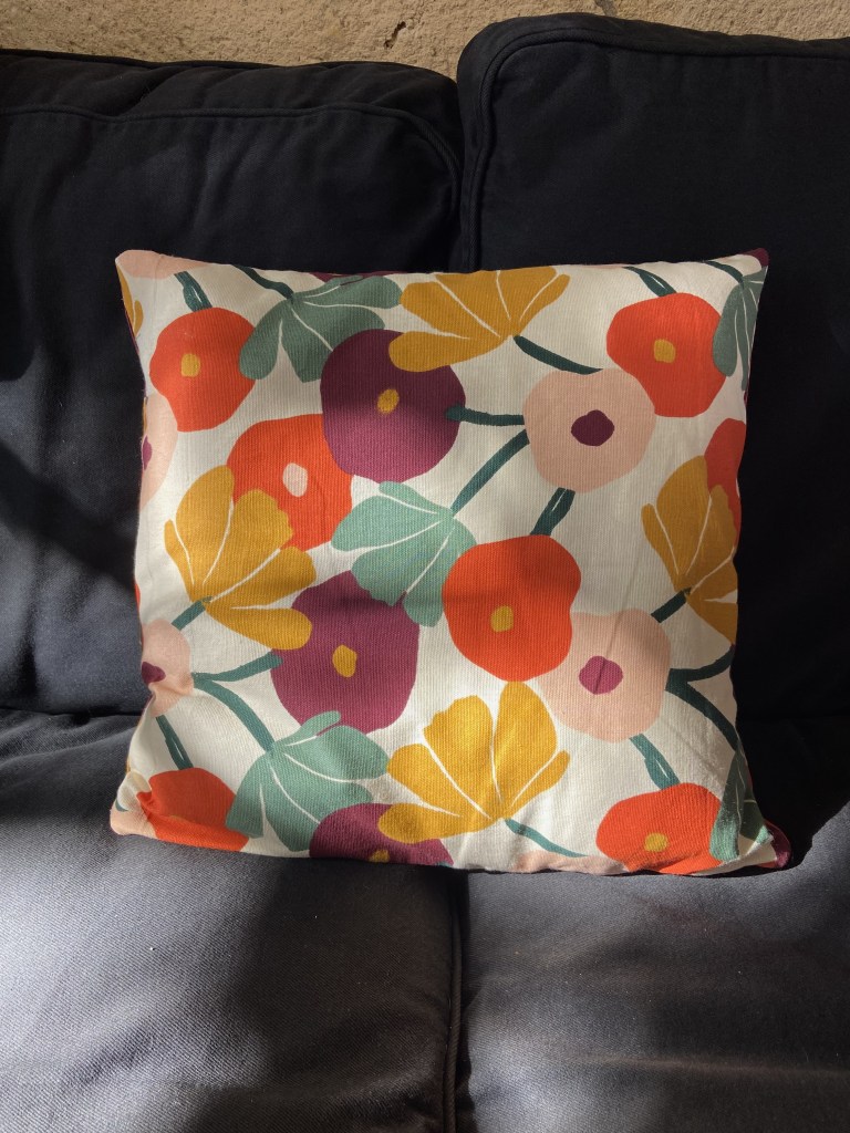 Pour mon canapé, je voulais des coussins au format plutôt carré, avec des couleurs qui s’associeraient bien avec le coussin du fauteuil, je n’ai rien trouvé qui me convenait… ou sinon hors budget.